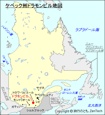 南部ケベック地方におけるドラモンビルの場所が判る地図