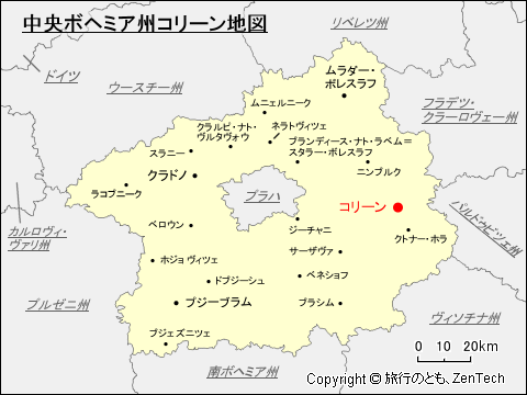 中央ボヘミア州におけるコリーンの位置が判る地図