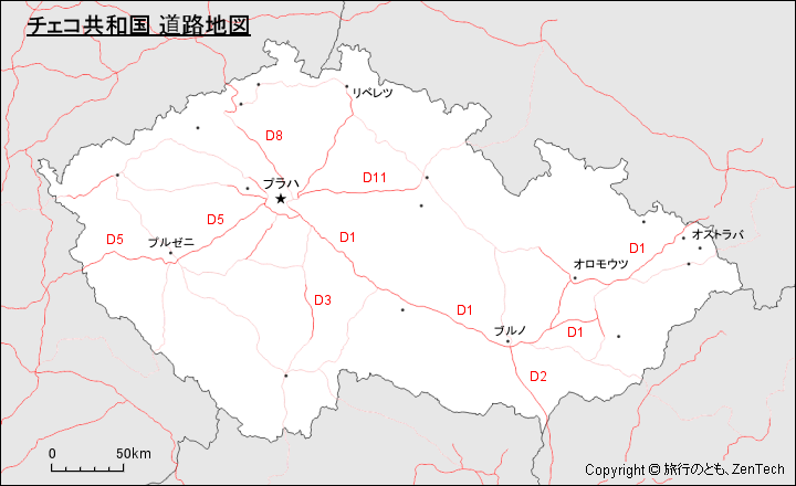 ページ先頭(チェコ共和国 道路地図)へもどる。