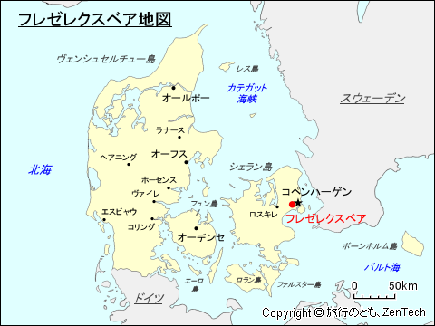 デンマークにおけるフレゼレクスベアの位置が判る地図