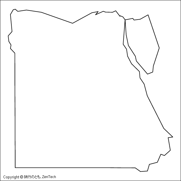 エジプト白地図(中サイズ):国境線と海岸線のみ 480ピクセル X 480ピクセル