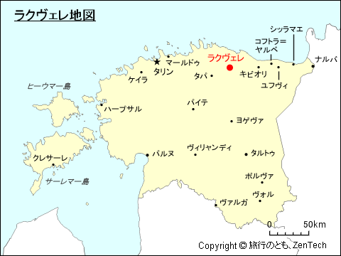 | 2. ラクヴェレ駅 / Rakvere Railway Station:駅からラクヴェレ市街中心部まで徒歩20分(南へ道なりで1.5キロメートル)、地図外上 |