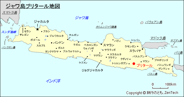 インドネシアにおけるブリタールの位置が判る地図(Map of Blitar, Java Island, Indonesia)
