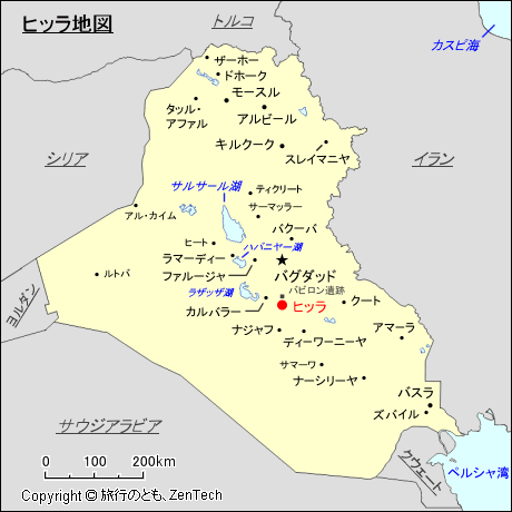 イラクにおけるヒッラの位置が判る地図(Map of Hillah, Iraq)