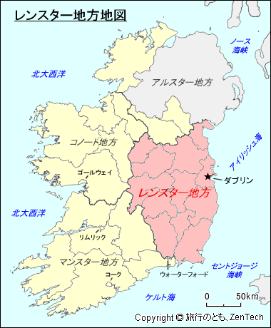 | 5 | ウェックスフォード / Wexford | バイキングやノルマン人の影響(侵攻)を受けた歴史が長い街で、12世紀以来の城塞都市(港町) | ダブリンから南へ約114キロメートル、ウォーターフォードから東北東へ約46km |