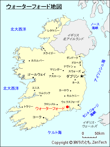 ウォーターフォードの観光名所としては、ウォーターフォード大聖堂(三位一体大聖堂、Waterford Cathedral (Cathedral of the Most Holy Trinity))、ザ・モール、司教館(ウォーターフォード宝物博物館、最初の建物は1096年に建築、1743年に司教エステ・チャールズの邸宅として修復)、ハウス・オブ・ウォーターフォード・クリスタル(ガラス製品の製造過程を見学できる施設)、中世博物館、ウォーターフォード博物館(Waterford Museum of Treasures)、スコット・キー(Scotch Quay)、クライストチャーチ大聖堂、レジナルドの塔(中世の塔(要塞))、城壁と見張り塔などがあります。
