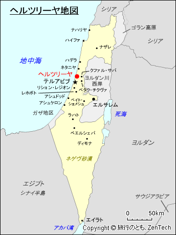 イスラエルにおけるヘルツリーヤの場所が判る地図