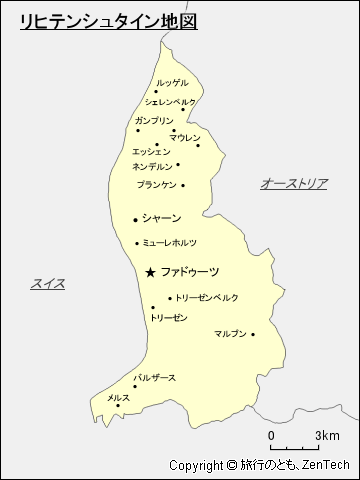 ![]() リヒテンシュタイン主要都市地図(日本語都市名入り) |