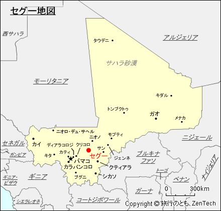 セグー(フランス語:Ségou)は、マリ 中西部のセグー州セグー圏にある都市で、セグー州の州都でありセグー圏の首府となっている街です。18世紀初頭に興ったバルバラ王国(セグー王国)の都となり、トゥクロール帝国によってバルバラ王国が滅ぼされるとトゥクロール帝国の都となった歴史ある街です。セグーの人口は 130,690人(2009年統計)、マリでは 5番目に人口の多い街です。面積 37平方キロメートル、海抜 294メートル、北緯 13度27分 西経 6度16分です。