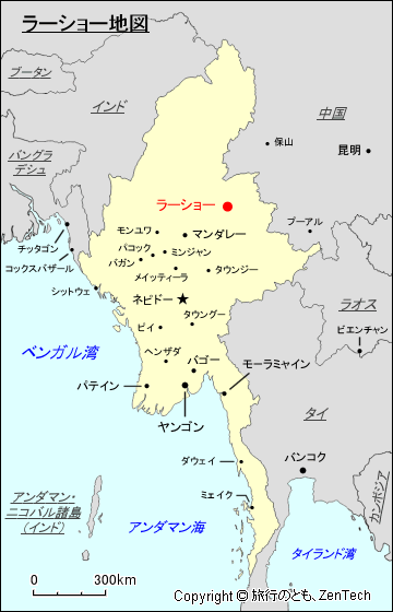 ラーショーの観光名所としては、マンスー・パゴダ(Mansu Pagoda)、マンスー・シャン僧院(Mansu Shan Buddhist Monastery)、ヤン・ティネ・アウン・パゴダ(Yan Tine Aung Pagoda)、ササナ2500年パゴダ(Sasana Year 2500)、ヒタカリ僧院(Hitakari Nunnery & Monastic Education Centre)、クアン・イン・サン中国寺院(観音寺、Quan Yin San Chinese Temple)、ラーショー・ナイト・バザー(Lashio Night Bazaar)、ラーショー温泉(Lashio Hot Spring)、サルサナの丘(Sarsana Hill)、フーモン・ダム(Hu Mon Dam)、リンノエト洞窟(Linnoet (bat) cave、蝙蝠(コウモリ)の洞窟)などがあります。