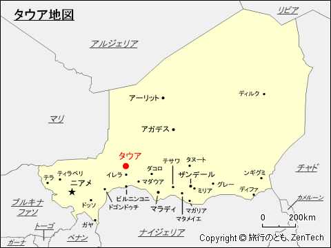 タウア地図(Map of Tahoua, Republic of the Niger)
