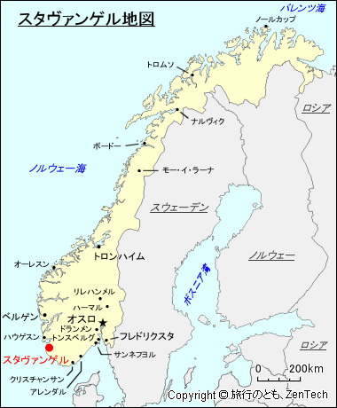 | 3. スタヴァンゲル空港(ソラ空港) / Stavanger Airport (Sola Airport):スタヴァンゲル市街中心部から南西へ約11キロメートル、地図外左下 |