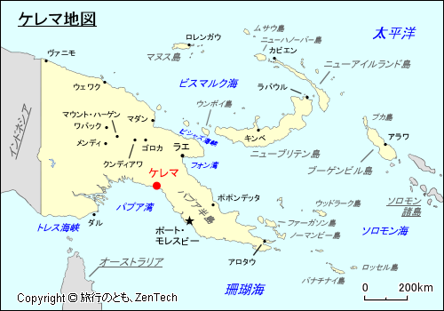 ケレマ(英語:Kerema, Papua New Guinea)は、パプアニューギニアのパプア地方湾岸州にある都市で、湾岸州の州都となっている街です。ニューギニア島南東岸のパプア湾沿岸に位置しています。ケレマの人口は 5,885人(2011年国勢調査、2000年国勢調査では人口 5,116人)、湾岸州では最大都市、パプアニューギニア全体では 21番目に人口の多い街です。