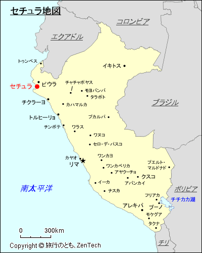 ペルーにおけるセチュラの場所が判る地図(Map of Sechura, Piura Region, Peru)