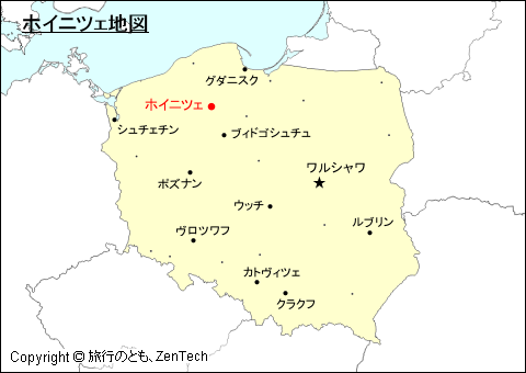 ホイニツェ(ポーランド語:Chojnice)は、ポーランド北部にあるポモージェ県にある人口 39,937人(2017年12月31日現在)の都市です。ホイニツェの観光名所としては、マーケット広場(Market Square)、シヴォフ門(Człuchów Gate (Schlochauer Tor))、ホイニツェ歴史民族学博物館(Muzeum Historyczno-Etnograficzne im. J. Rydzkowskiego w Chojnicach (Museum of History and Ethnography in Chojnice))、洗礼者聖ヨハネ大聖堂(Bazylika Mniejsza pw. Ścięcia św. Jana Chrzciciela (Basilica of the Beheading of St. John the Baptist in Chojnice))、聖母マリア受胎告知教会(Kościół Rzymskokatolicki pw. Zwiastowania Najświętszej Maryi Panny)、美術館(Galeria Muzeum Janusza Trzebiatowskiego)、ティションツレチャ公園(Park Tysiąclecia)などがあります。