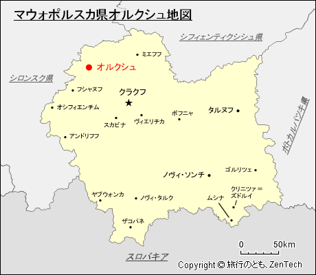 マウォポルスカ県におけるオルクシュの位置が判る地図
