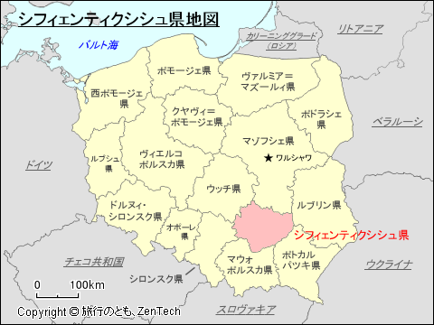 ポーランドにおけるシフィェンティクシシュ県の場所が判る地図