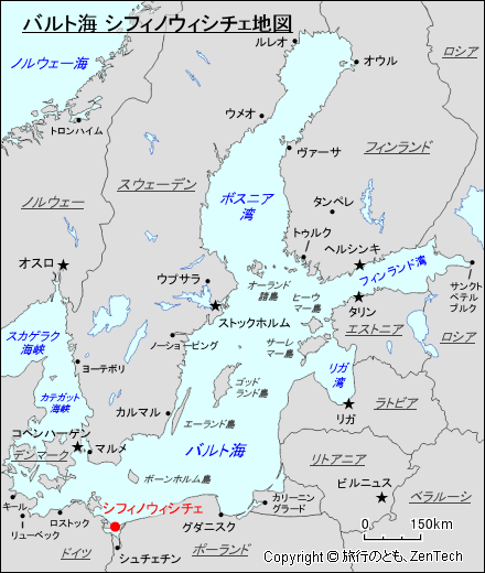 ポーランドにおけるシフィノウィシチェの位置が判る地図(Map of Świnoujście, West Pomeranian Province, Poland)