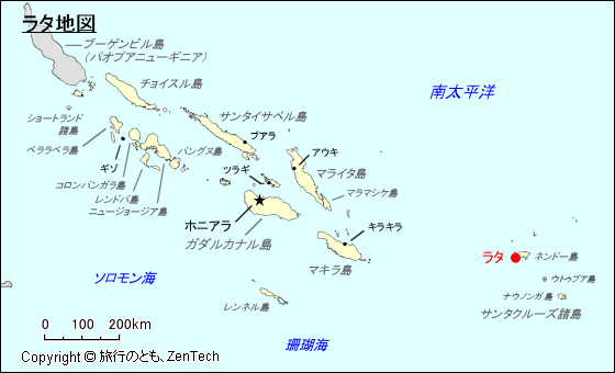 ソロモン諸島におけるラタの場所が判る地図