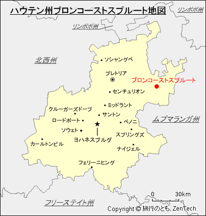 ハウテン州におけるブロンコーストスプルートの位置が判る地図