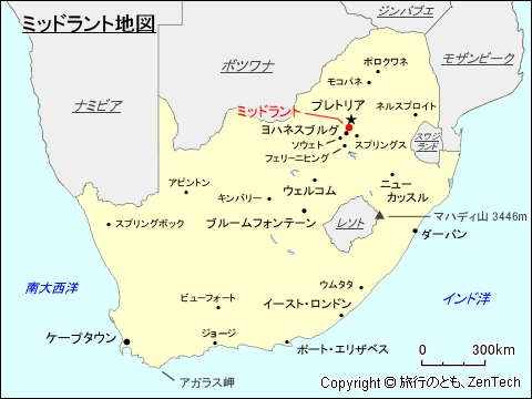ミッドラント(英語:Midrand, Republic of South Africa)は、南アフリカ共和国北東部のハウテン州ヨハネスブルグ市都市圏にある都市です。ヨハネスブルグと南アフリカ共和国の行政首都プレトリアの間に位置する街です。ミッドラントの人口は 184,099人(2007年推計、1996年統計では人口 126,400人)、ハウテン州では 15番目、南アフリカ共和国全体では 31番目に人口の多い街です。