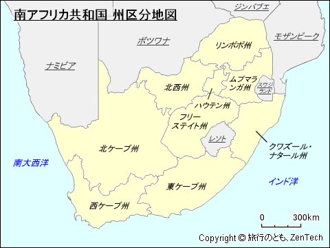 | 7 | ハウテン州 | Gauteng | GP / GT | ヨハネスブルグ | ヨハネスブルグ |