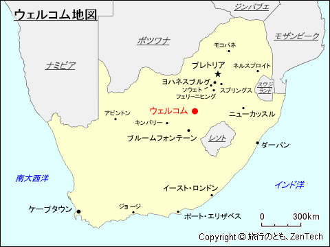南アフリカ共和国におけるウェルコムの位置が判る地図