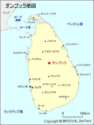 ダンブッラへの交通アクセスは、飛行機ではシギリヤ空港(Sigiriya Airport)、バスではダンブッラ・メイ・バス・スタンド(Dambulla Main Bus Station)があります。スリランカの最大都市コロンボからダンブッラまで車や長距離バスで 3時間25分(北東へ道なりで 150km)、キャンディから車やバスで 1時間45分(北へ道なりで 75km)です。ダンブッラからトリンコマリーまで車やバスで 1時間50分(北東へ道なりで 110km)、バッティカロアまで車やバスで 3時間(東へ道なりで 160km)です。
