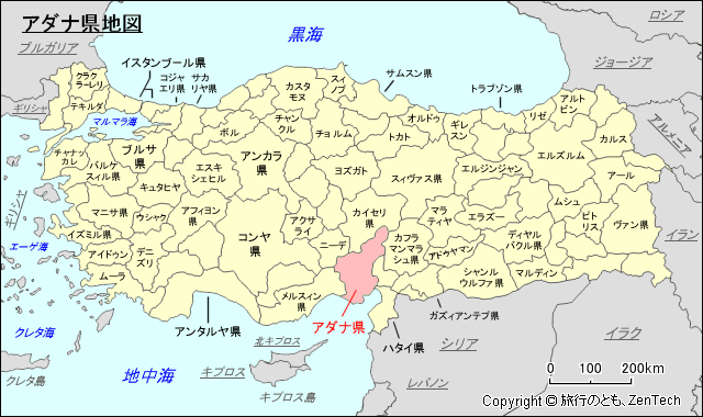 アダナ県地図(Map of Adana Province, Mediterranean Region, Turkey)