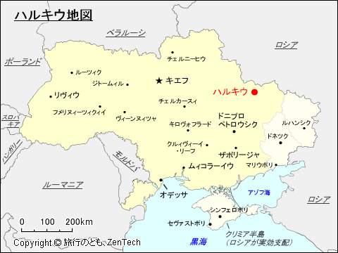 | 1. ハルキウ国際空港 / Міжнародний аеропорт "Харків"(Kharkiv International Airport):ハルキウ市街中心部から空港まで車で20分(南南東へ道なりで10キロメートル)、地図外右下 |