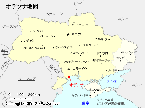 | 1. オデッサ国際空港 / Odessa International Airport:オデッサ市街中心部から空港まで車で15分(南西へ道なりで7.5km)、地図外左下 |