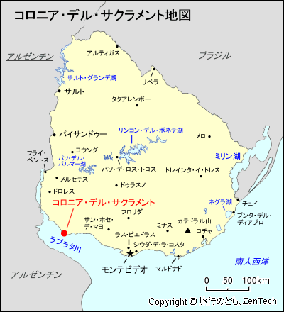 コロニア・デル・サクラメント(スペイン語:Colonia del Sacramento, Uruguay)は、ウルグアイ東方共和国南西部沿岸のコロニア県にある都市で、コロニア県の県庁所在地となっている街です。コロニア・デル・サクラメントの人口は 26,231人(2011年国勢調査)、コロニア県の最大都市、ウルグアイでは 19番目に人口の多い街です。海抜 27メートル(89フィート)、南緯 34度28分17秒 西経 57度50分39秒です。1680年にポルトガル人のマヌエル・ロボが建設した街「コロニア・ド・サクラメント(Colônia do Sacramento)」がこの街の起源で、ウルグアイに現存する都市としては2番目に歴史ある街です。歴史的にスペインとポルトガルの支配が何度も入れ替わったために、12ヘクタールの小さな町にスペイン・ポルトガル様式の建築物が混在する珍しい街並みです。1995年に「コロニア・デル・サクラメントの歴史的町並み(Historic Quarter of the City of Colonia del Sacramento)」の名称でユネスコの世界遺産(文化遺産)に登録されました。