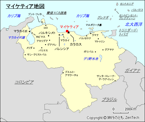 ベネズエラにおけるマイケティアの場所が判る地図(Map of Maiquetía, Vargas State, Venezuela)