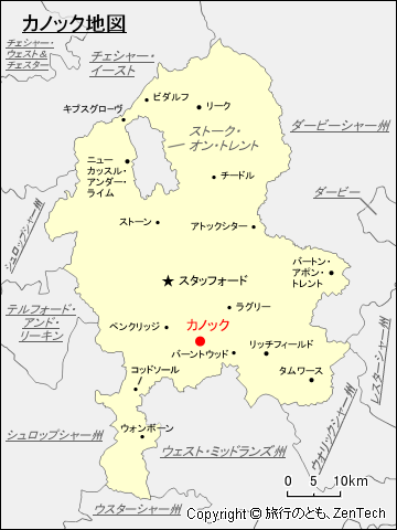 スタッフォードシャー州におけるカノックの位置が判る地図