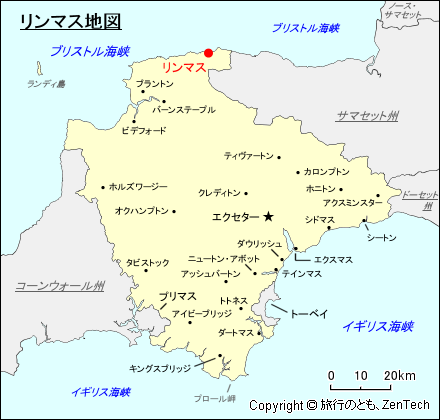 リンマス(英語:Lynmouth, Devon)は、イギリスのイングランド地方サウス・ウェスト・イングランド(南西イングランド地域)のデヴォン州ノース・デヴォン・ディストリクト(非都市ディストリクト)にある街(ビレッジ)です。ウェスト・リン川とイースト・リン川が合流しブリストル海峡に流れ込む場所に位置する街です。
