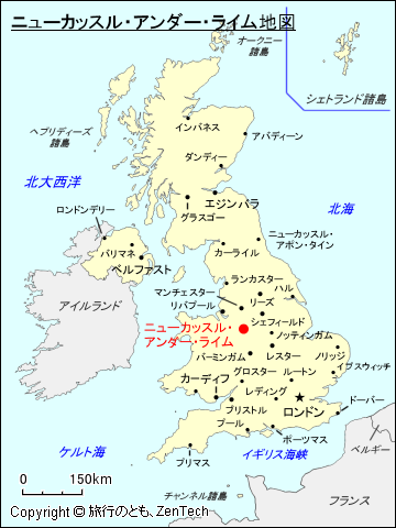イギリスにおけるニューカッスル・アンダー・ライムの位置が判る地図