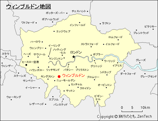 ウィンブルドン(英語:Wimbledon)は、イギリスのイングランド地方南東部にあるグレーター・ロンドン(大ロンドン)の特別区の一つ「マートン区」にある街です。ウィンブルドンは、ロンドン中心部からから南西へ13キロメートルの場所に位置しています。