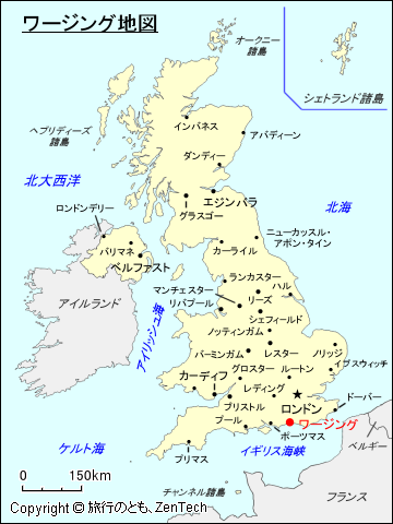ワージング(ワーシング、英語:Worthing, West Sussex)は、イギリスのイングランド地方サウス・イースト・イングランド(南東イングランド地域)にあるウェスト・サセックス州の都市です。ワージングの人口は 110,570人(2019年現在)、都市圏人口 474,485人です。面積 32.48平方キロメートル、海抜 7メートル(最高地点 184m)、北緯 50度48分53秒 西経 00度22分17秒です。