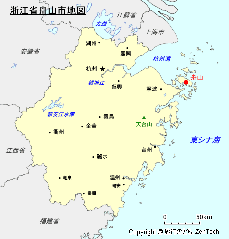 中国における舟山の位置が判る地図(Map of Zhoushan City, Zhejiang Province, People's Republic of China)