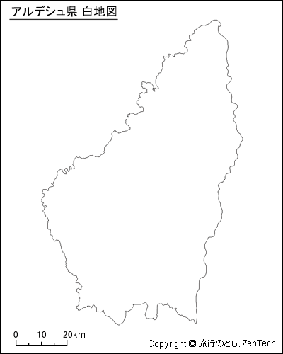 アルデシュ県 白地図(Outline map of Ardèche, Rhône-Alpes, France)