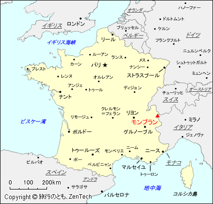 「La Traversée(= 縦走コース)」とも呼ばれる「La Voie des 3 Monts(= 三山ルート)」登山コースがあります。登山の拠点となるのは標高 1,035メートルのシャモニー(Chamonix)で、シャモニーからロープウェイ(Téléphérique de l'Aiguille du Midi)で標高 3,842メートルのエギーユ・デュ・ミディ(Aiguille du Midi、ミディ針峰)まで一気に駆け上ります。エギーユ・デュ・ミディから南へ伸びる稜線を少し下った場所にコスミック小屋(Refuge des Cosmiques)があり、この山小屋で一夜を過ごします。因みにこの山小屋のある場所はコル・デュ・ミディ(Col du Midi)です。2日目は早朝に山小屋を出発し、モンブラン・デュ・タキュル(Mont Blanc du Tacul、標高 4,248m)とモン・モディ(Mont Maudit、標高 4,465m)を経て、モンブランに登頂します。