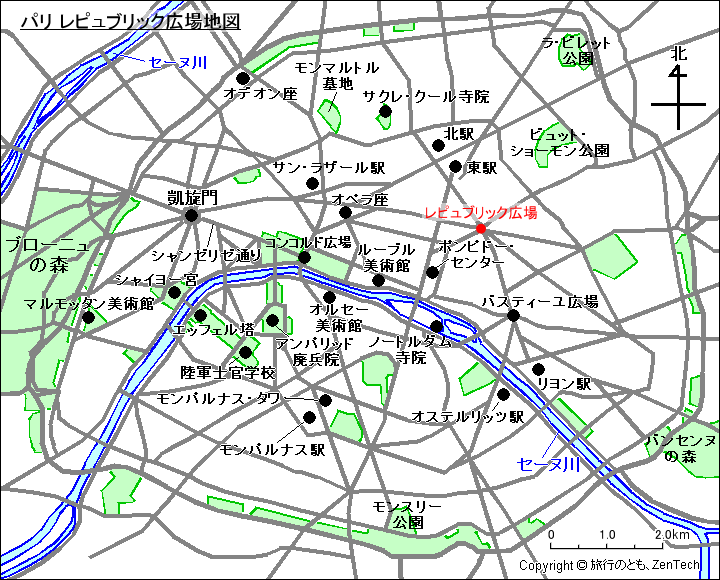 レピュブリック広場地図(Map of Place de la République, Paris, Île-de-France, France)