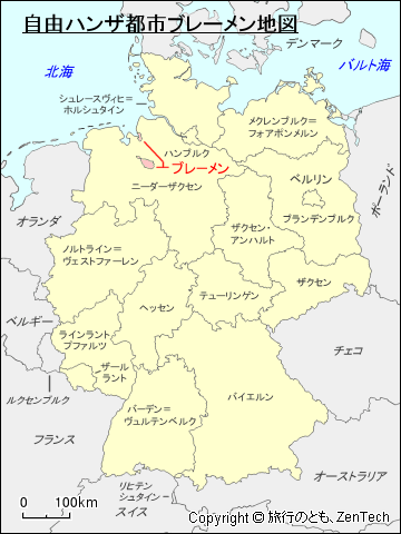 ドイツ州区分における自由ハンザ都市ブレーメンの位置が判る地図