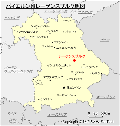 バイエルン州におけるレーゲンスブルクの位置が判る地図