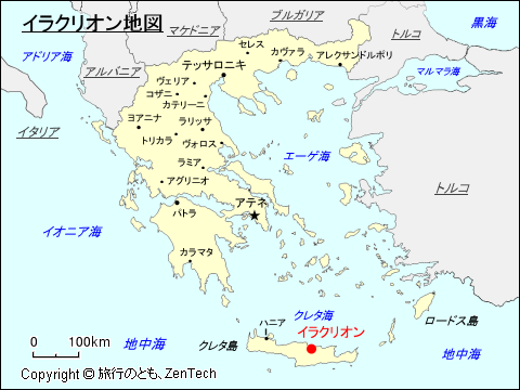 ギリシャにおけるイラクリオンの位置が判る地図(Map of Heraklion, Crete Island, Greece)