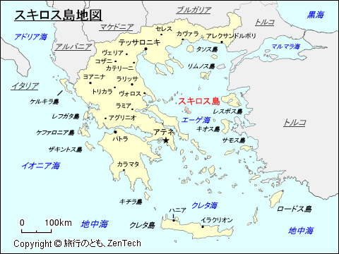 ギリシャにおけるスキロス島の位置が判る地図(Map of Skiros Island, Sporades Islands, Greece)