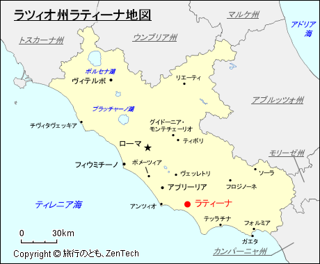 ラツィオ州におけるラティーナの位置が判る地図