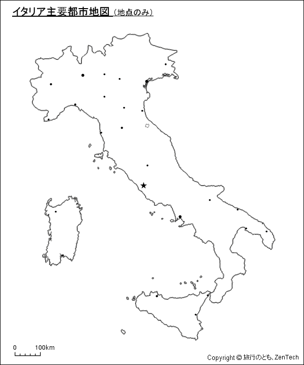 イタリア主要都市地図(地点のみ)(Main cities Map of Italy)
