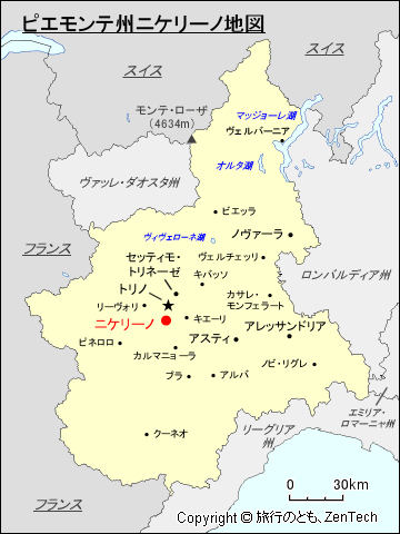イタリアにおけるニケリーノの位置が判る地図(Map of Nichelino, Piemonte Regione, Italy)