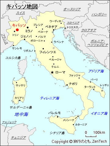 イタリアにおけるキバッソの場所が判る地図(Map of Chivasso, Torino Province, Piemonte Region, Italy)